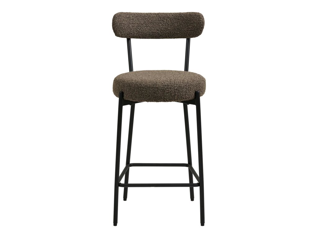 Barová židle BADALONA, potah bouclé, hnědá je pohodlnou židlí bez područek k barovému stolu nebo pultu. Sedák je čalouněn 100% potahem z polyesteru v provedení bouclé, na překližce, podnož je z oceli, barvená do černa. Barová židle BADALONA je na stabilních čtyřech nohách s plastovými krytkami proti poškrábání podlahy.