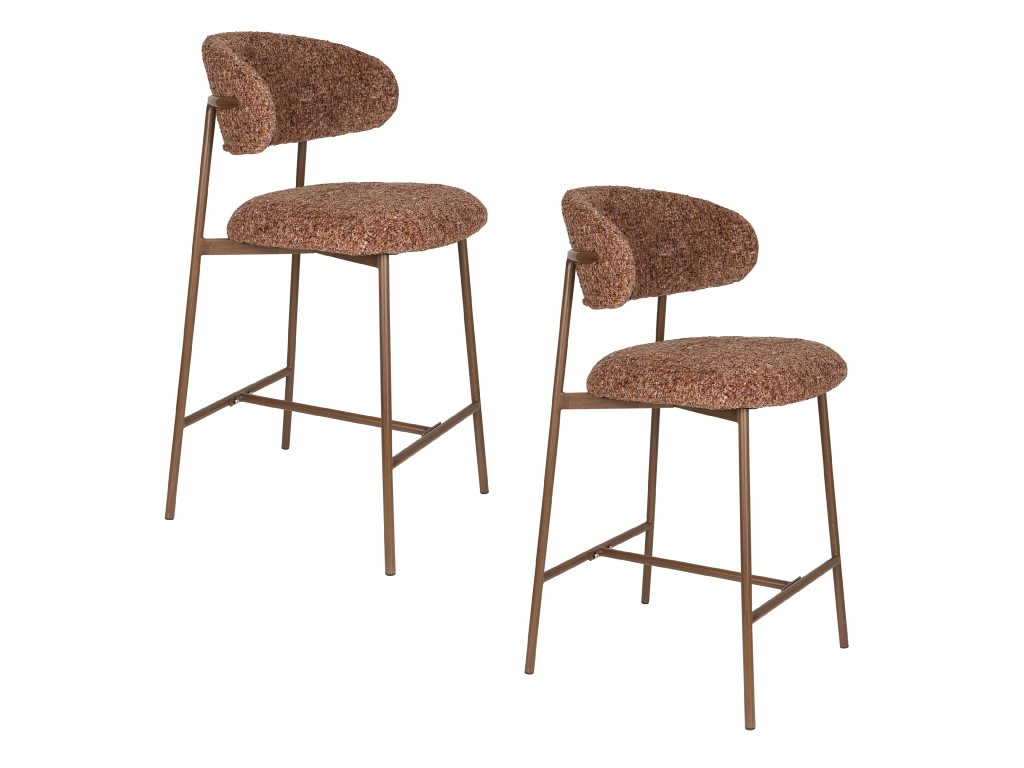 Barová židle CLAES, kovová, s hnědým polyesterovým potahem