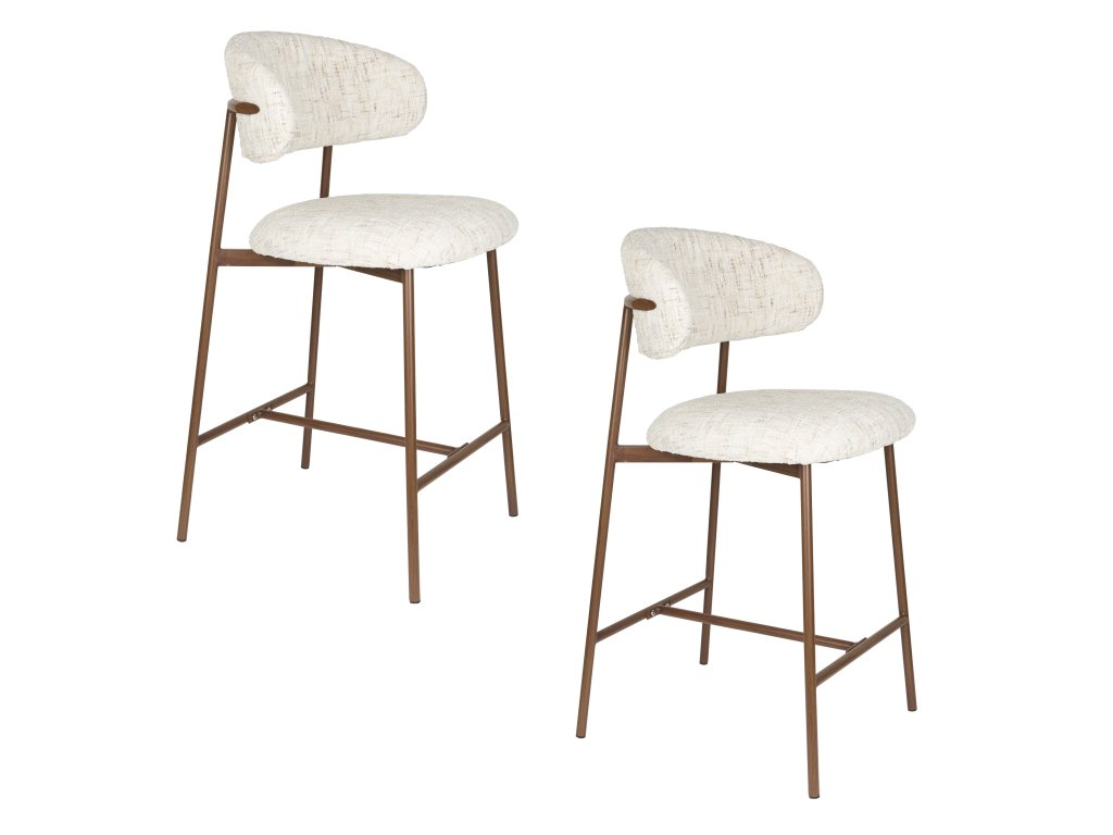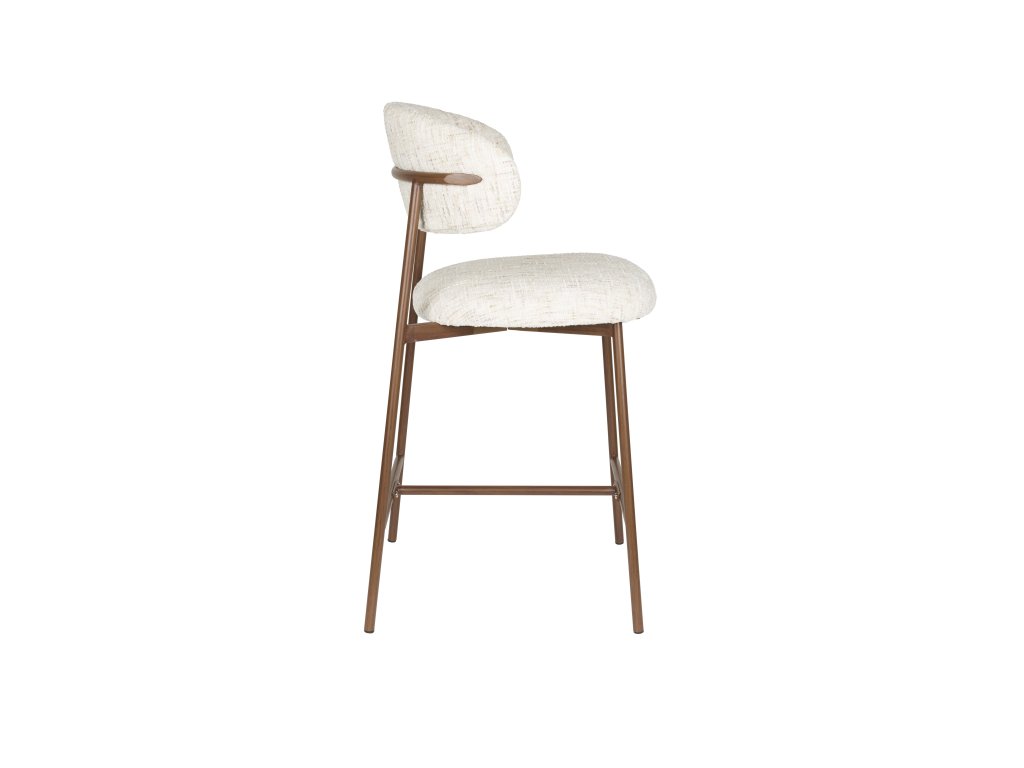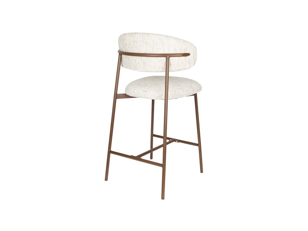 Barová židle CLAES, kovová, s krémově bílým polyesterovým potahem