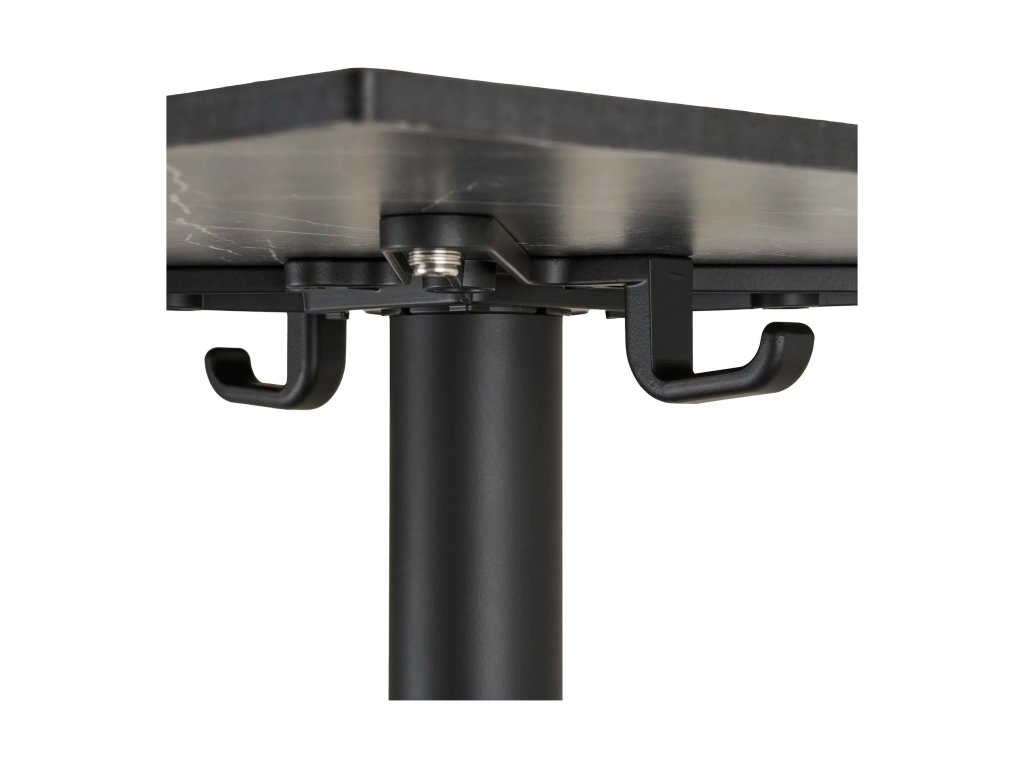 Kovová konstrukce i deska, která vzhledem připomíná mramor