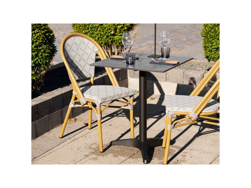 V tu chvíli je tady přesně čas pro bistro stůl (nebo stůl na kávu) od dánské firmy House Nordic. Stůl TROJNOŽKA se čtvercovou deskou jeprávě tak velký, aby se k němu vešly dvě židle a abyste si mohli nerušen povídat. Stůl TROJNOŽKA čtverec je celý kovový, deska má vzhledem působit jako mramor. Stůl se velmi snadno udržuje.