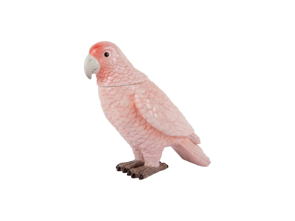Keramická růžová dóza ve tvaru papouška na drobnosti, víko dózy je hlava