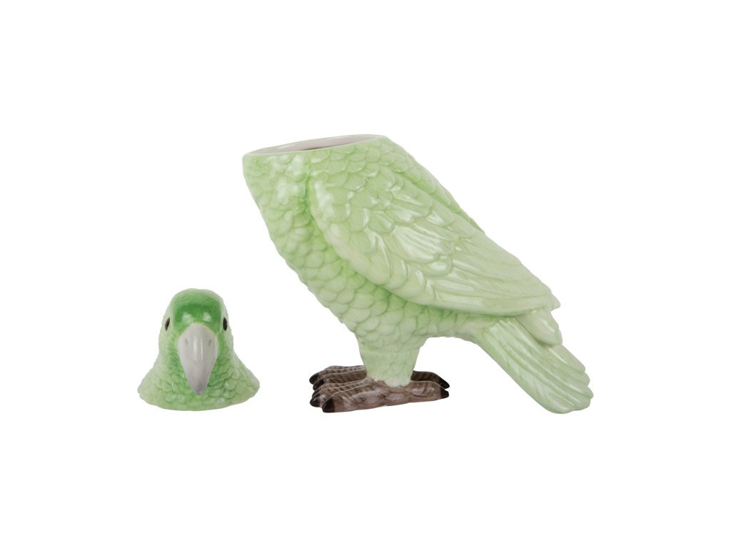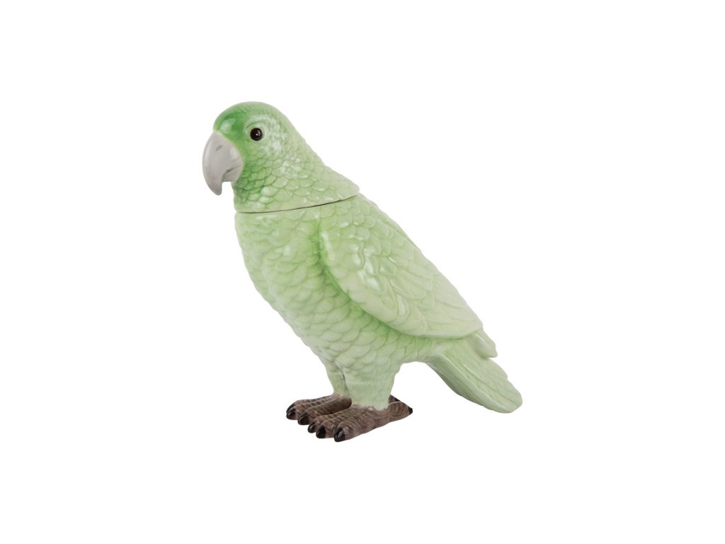 Keramická zelená dóza ve tvaru papouška na drobnosti, víko dózy je hlava