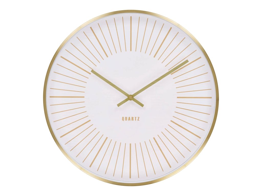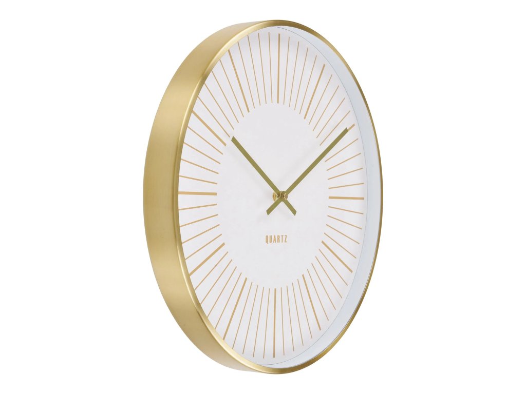 Nástěnné hodiny TAKAMAKA o průměru 40 cm z hliníku ve zlaté barvě se skleněným krytem jdou potichu