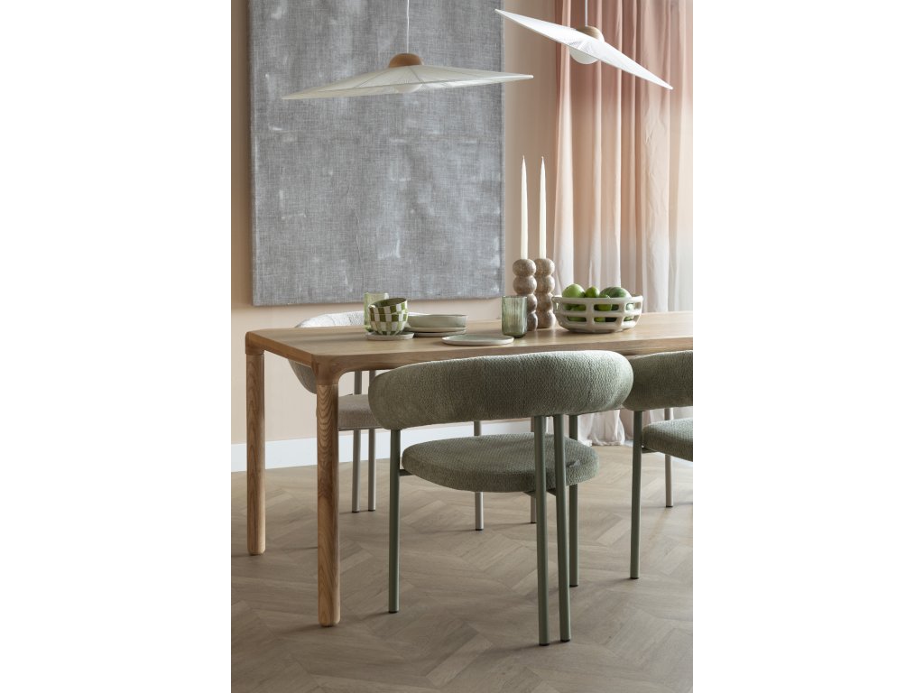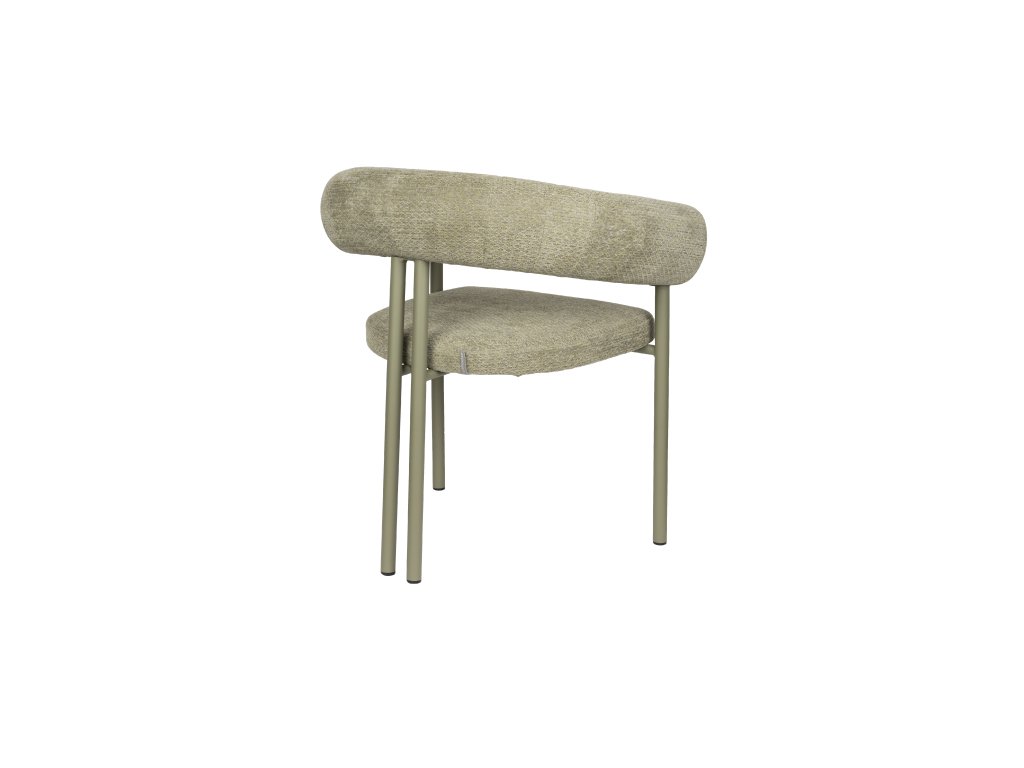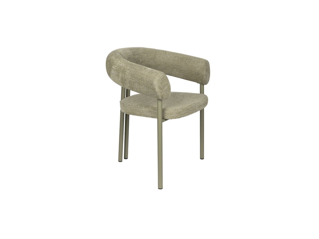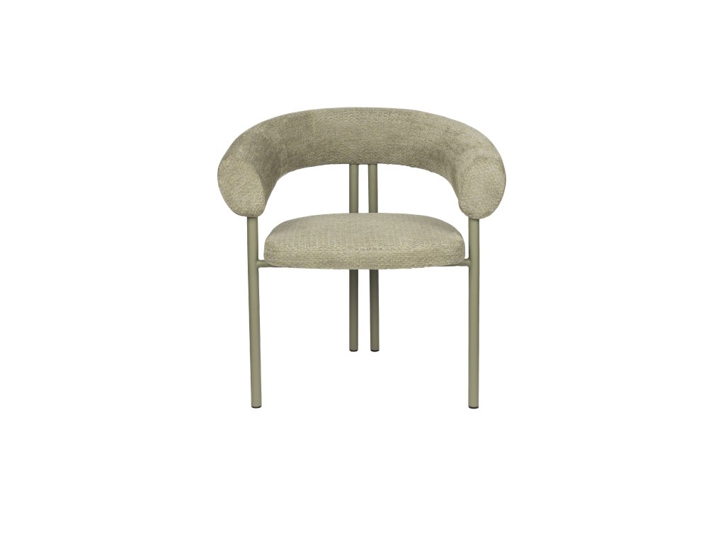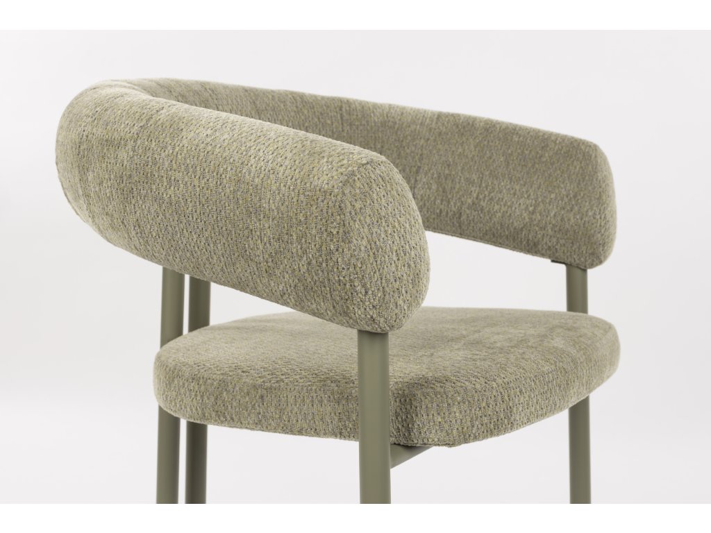 Jídelní křeslo HEELS od holandského výrobce Zuiver Vás láká k sezení: prostě neodoláte. Opěradlo a područky plynule přecházejí do sebe a tvoří měkký půlkruh, který působí jako jemné objetí. Tento útulný vzhled je umocněn měkkým, hmatovým čalouněním v chladných tónech. Kovová základna je ve stejném svěžím odstínu, zatímco těsně u sebe umístěné zadní nohy dodávají hravý nádech.