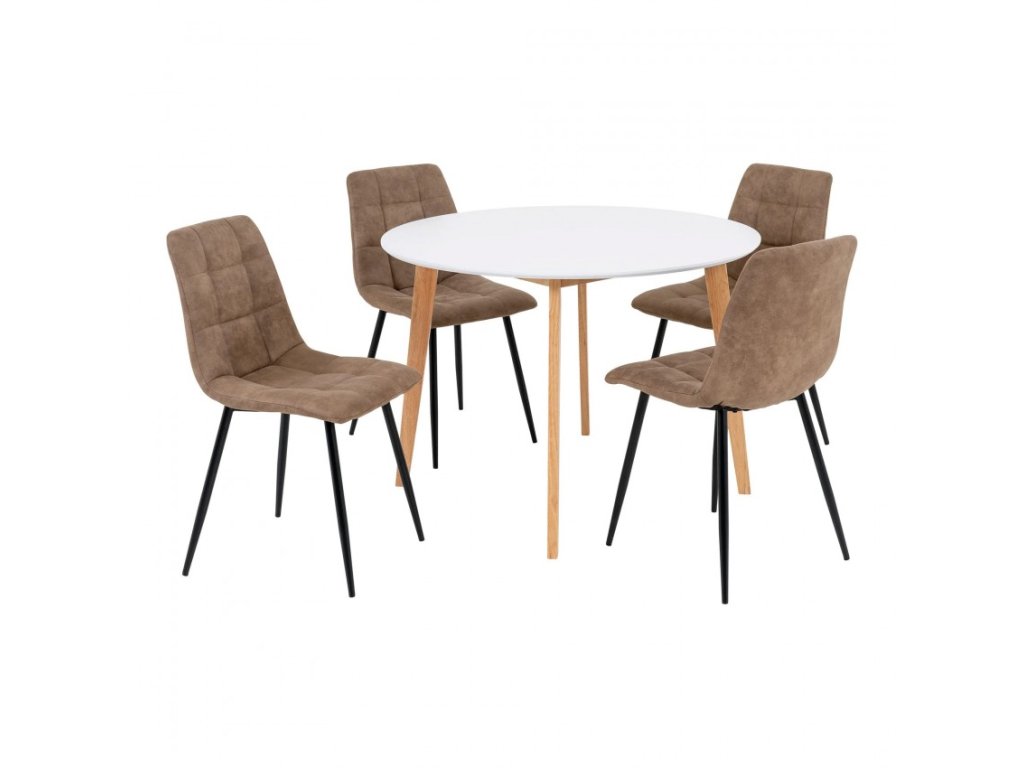Jídelní set House Nordic - stůl VOJENS bílý a 4x židle MIDDELFART hnědé