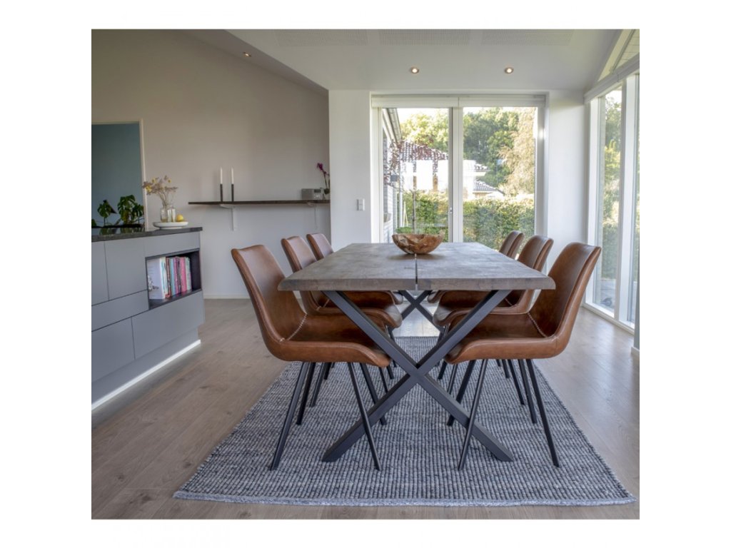 Každá jídelna potřebuje krásný dřevěný stůl z masivu. Jídelní stůl TOULON HOUSE NORDIC, tmavý dub o rozměrech 200x95xh75x4 cm v kombinaci s podnoží z robustního černého kovu toto splňuje na 100%. Masivní dubová deska je ošetřena kouřovým olejem a hrany desky jsou opracovány do skosení a lehkého zvlnění.