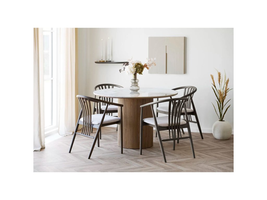Jídelní židle AGUSTIN HOUSE NORDIC je vyrobena z dubového dřeva, sedák je vyroben z polyesteru, vyplněný polyuretanem.