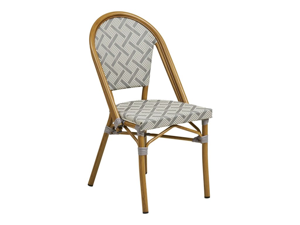 Může židle klamat tělem? Jídelní židle LAURIA klame svým vzhledem - kovová konstrukce je upravena do tvaru a barvy bambusu. Textilní potah sedáku s tkanicí omotanou kolem kovové konstrukce dotahuje vzhled k dokonalosti. Jídelní židli LAURIA využijete v interiéru i exteriéru.