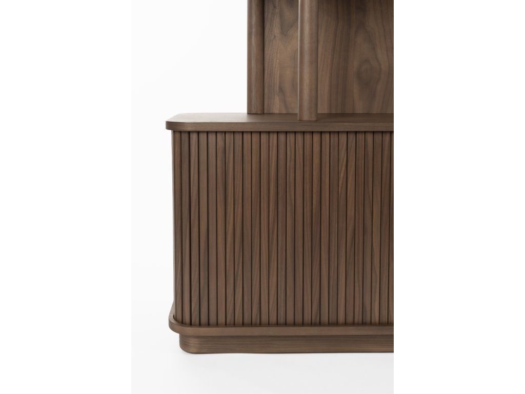 Vystavte a uložte skryté: knihovna BARBIER zvládne obojí! Skříňka se skládá z pěti překvapivých vrstev s otevřenými i uzavřenými přihrádkami. Alespoň pokud se tak rozhodnete. Stejně jako zbytek řady Barbier je i tento kus nábytku vybaven známými posuvnými dvířky. Zasuňte je dovnitř nebo je nechte mírně pootevřené. Rozhodněte se, kolik chcete ukázat.