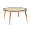 Konferenční kulatý stolek HARU WLL ⌀70 cm, dub+ratan+sklo, béžový