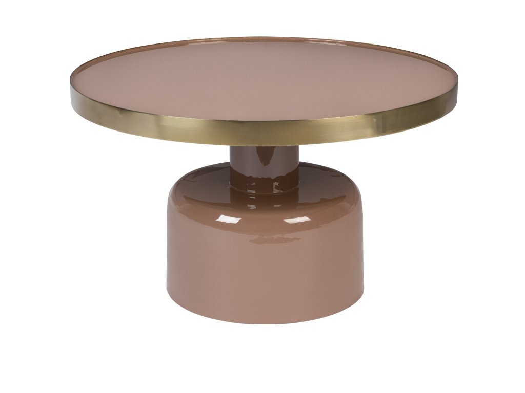 Konferenční smaltovaný stolek GLAM ZUIVER 60 cm, růžový má smaltovanou ocelovou horní desku s práškovaným nástřikem a základnu stolku ze smaltovaného kovu růžově lakovaného. Zlatavé doplňky dodavají stolku GLAM nádech luxusu, který je vhodný do obývacího pokoje.Velmi snadno se udržuje, čímž je vhodný i do komerčních prostor.