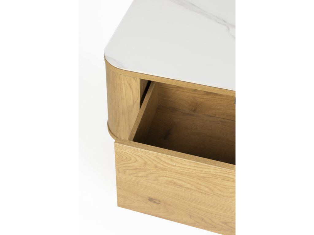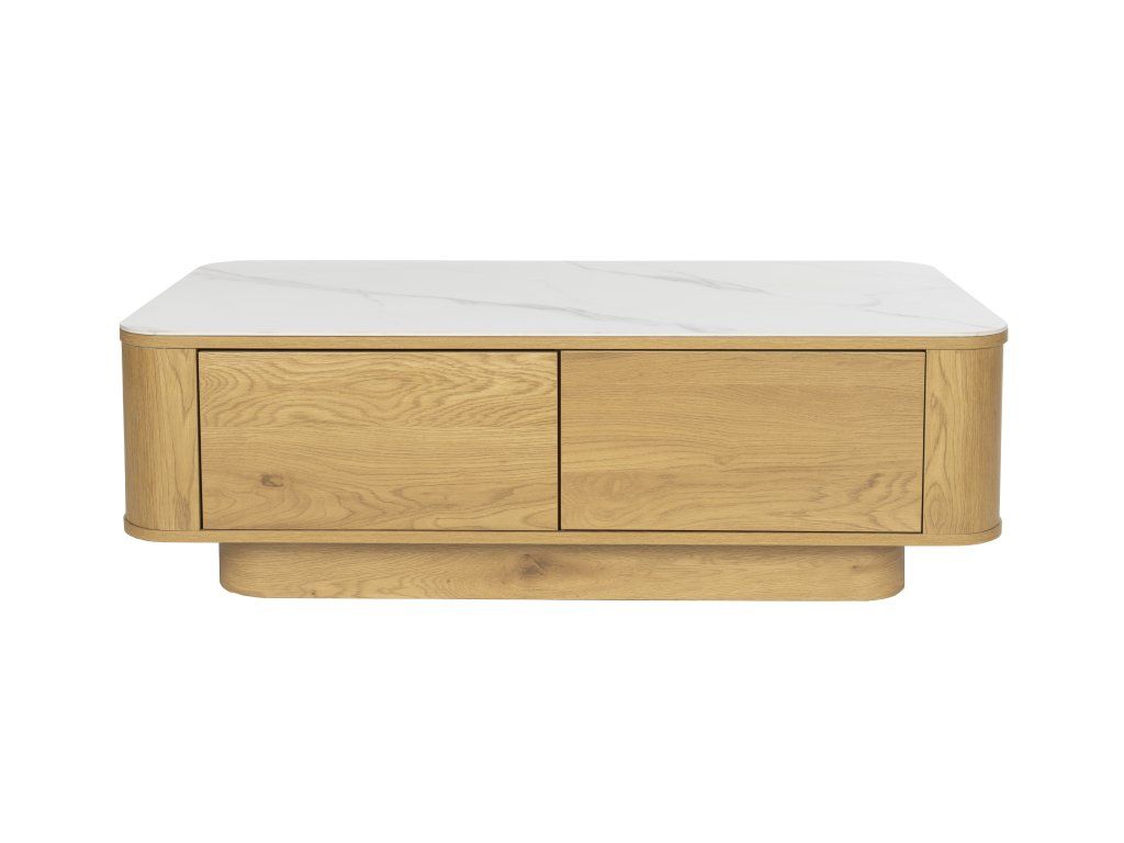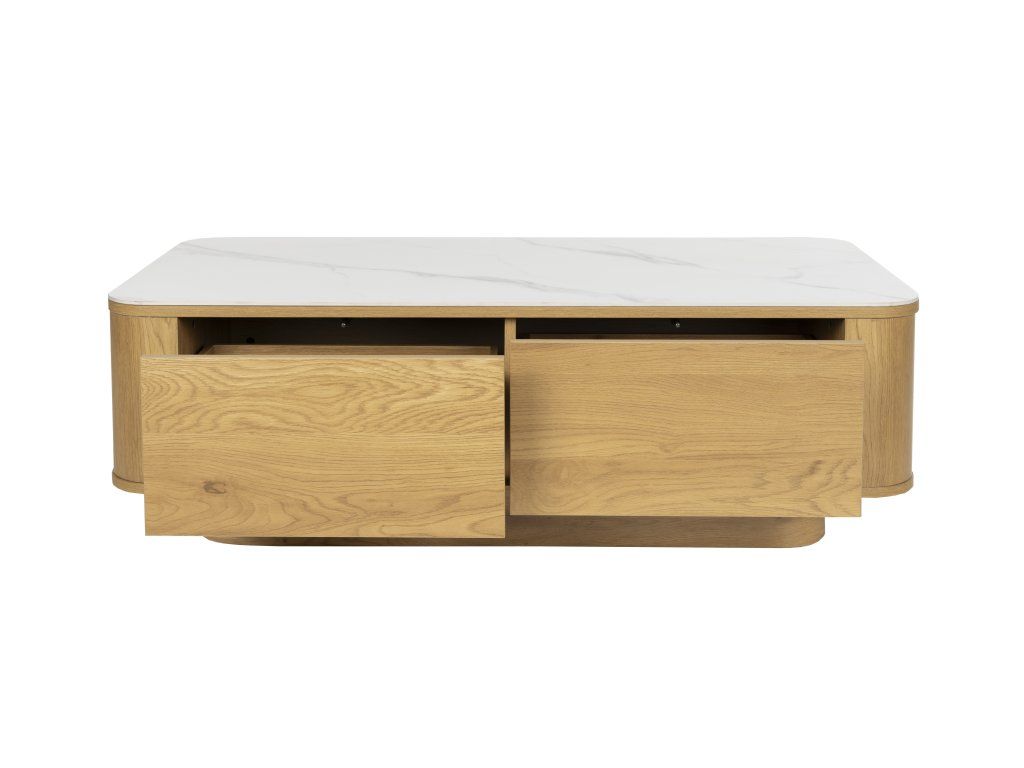 Konferenční stolek ALMIRA je působivý obdélníkový stolek s jedinečným kontrastem mezi deskou ve vzhledu mramoru a přírodní spodní částí se dvěma zásuvkami. Kombinace těchto materiálů a jedinečný design činí z tohoto stolku opravdový skvost v každém interiéru.