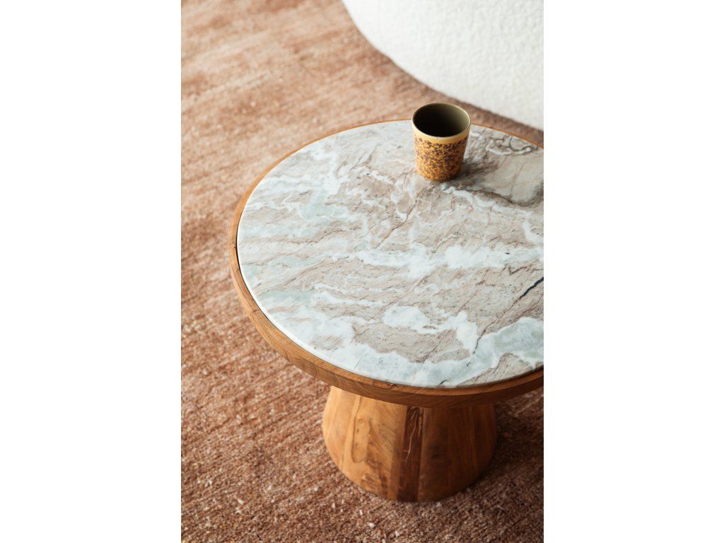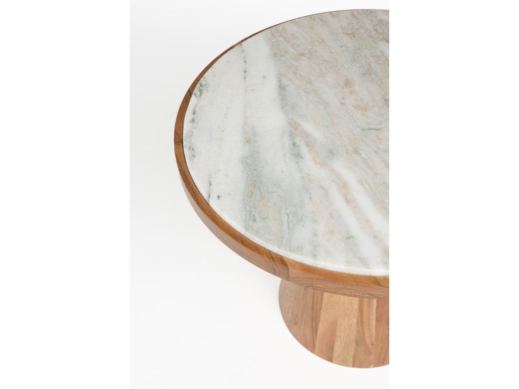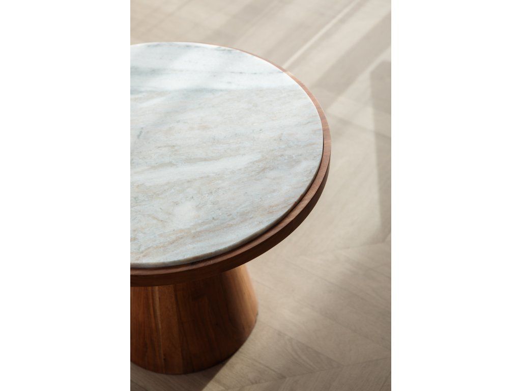 Konferenční stolek MEES WLL, průměr 50 cm, akáciové dřevo a mramor, hnědý