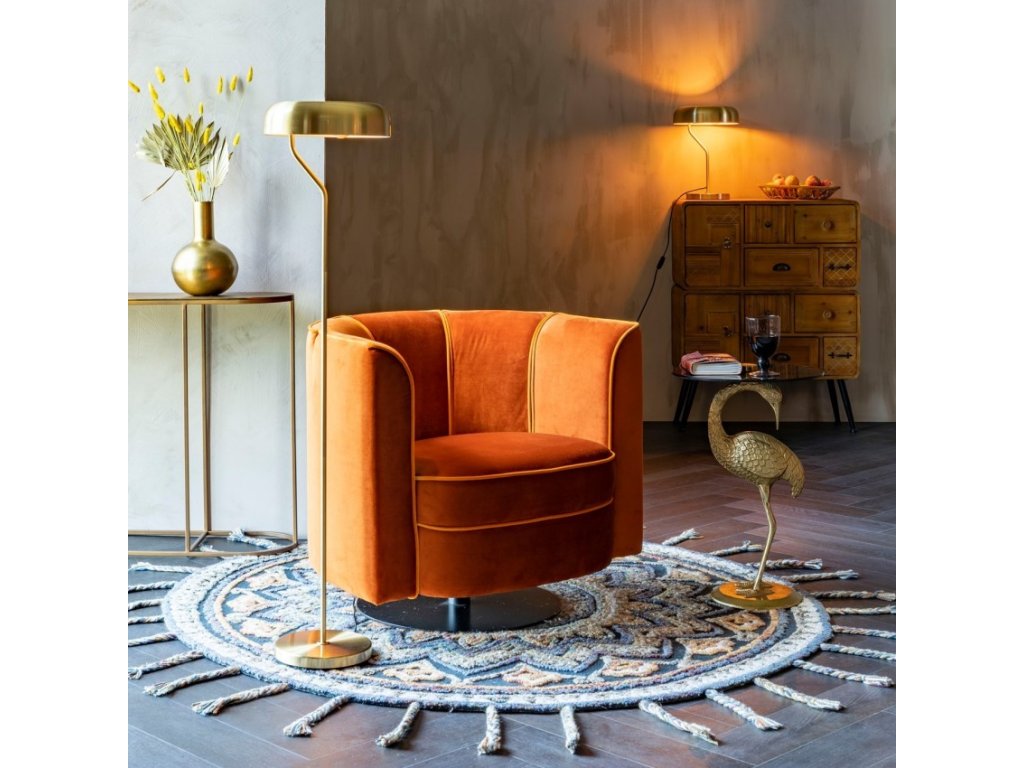 Komfortní křesílko s nádechem 20. let, to je křeslo FLOWER oranžové, od holandské firmy DUTCHBONE! Otočná noha přispívá k celkovému pohodlí při relaxu v tomto výjimečném kousku. Křeslo FLOWER krásně padne jak do salónku, tak i do Vašeho obýváku!