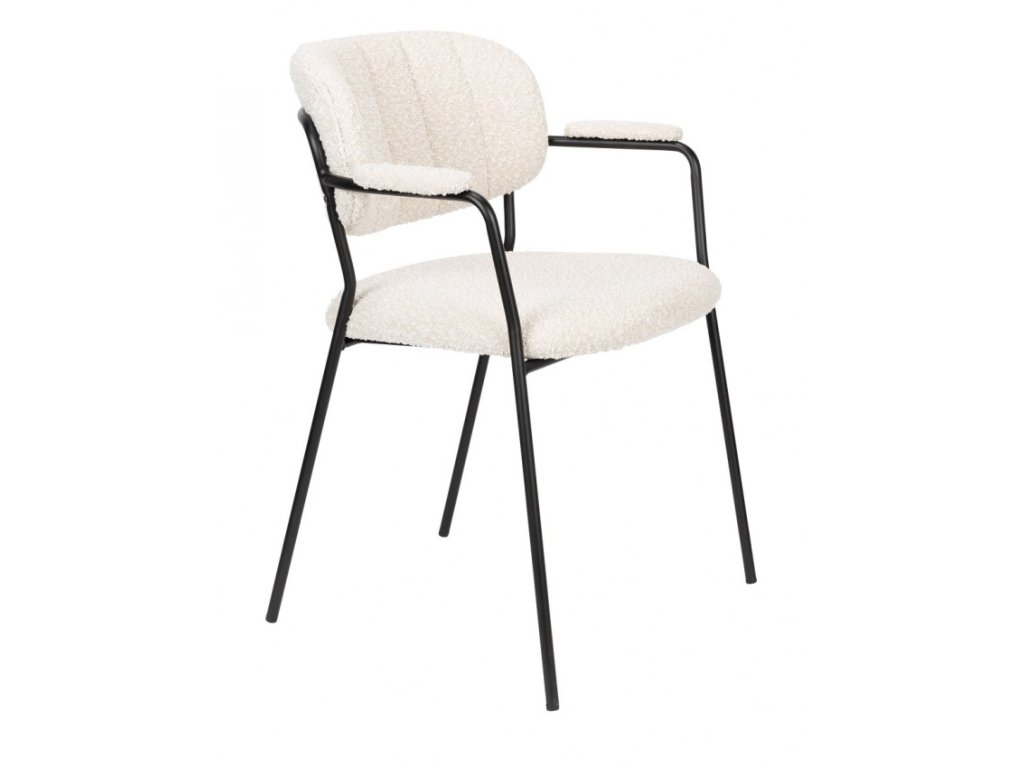 Křeslo s područkami JOLIEN WLL bouclé/nohy černé je velmi pohodlné křeslo k jídelnímu stolu nebo ke stolu v restauraci či v komerčních prostorách hotelu, které nabízí holandská firma White Label Living (WLL).