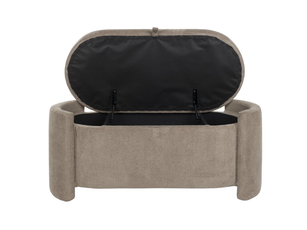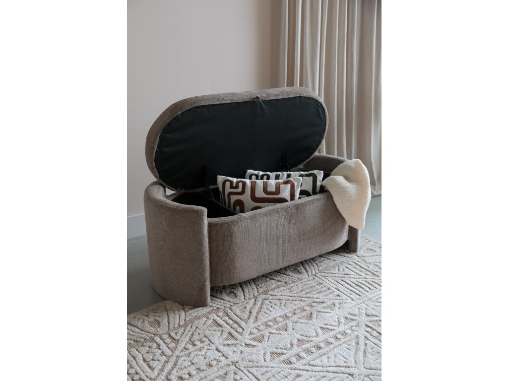 Lavice MIRO od holandské firmy White Label Living (WLL) je vyrobena z MDF, potah je z polyesteru. Výhodou je úložný prostor pod víkem.
