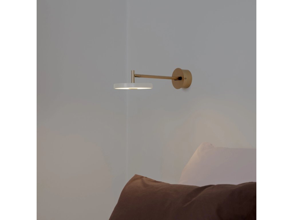 Nástěnná lampa Asteria, která je k dispozici v různých pečlivě vybraných barvách, se bez problémů integruje do jakéhokoli interiéru a dodává prostředí nádech rafinované elegance. Je k dispozici ve verzi s pevným a nezapojeným připojením. U verze s pevným zapojením se svítidlo montuje přímo na elektrickou zásuvku ve zdi a jinak viditelné rozvody jsou skryty ve zdi.