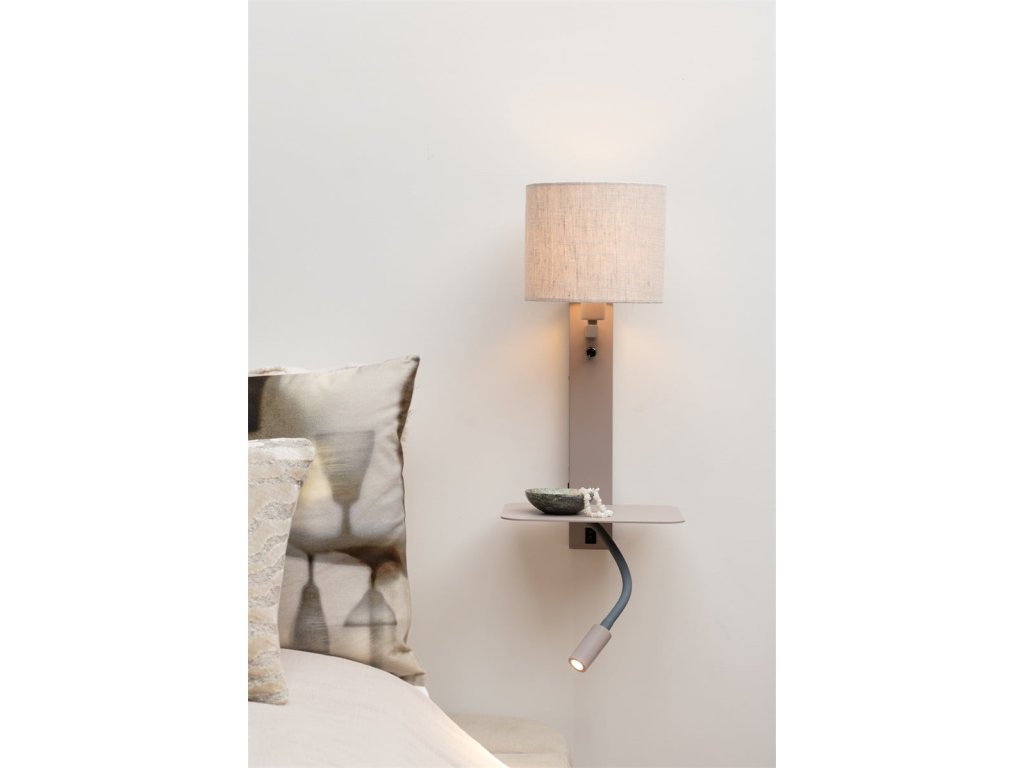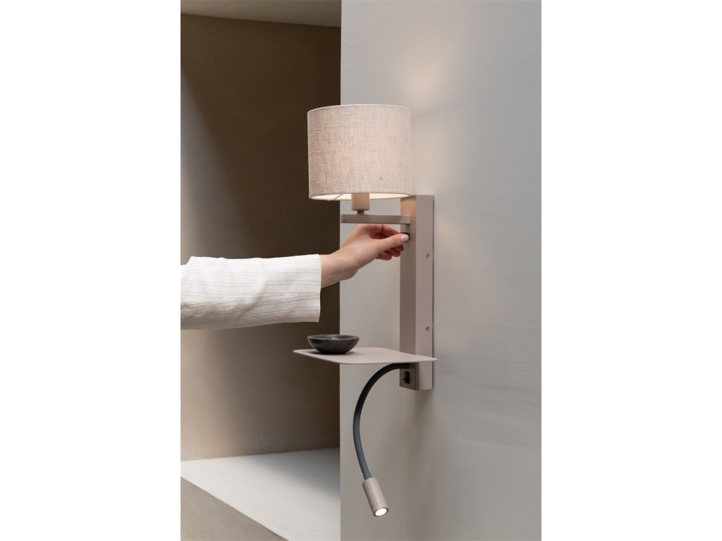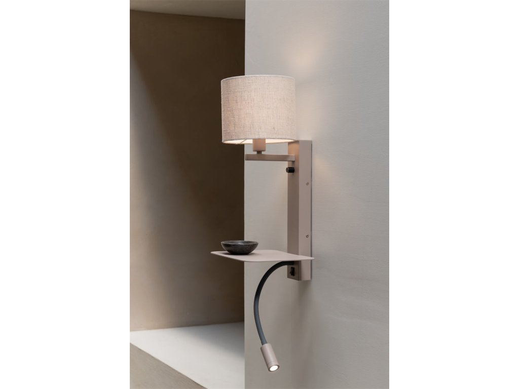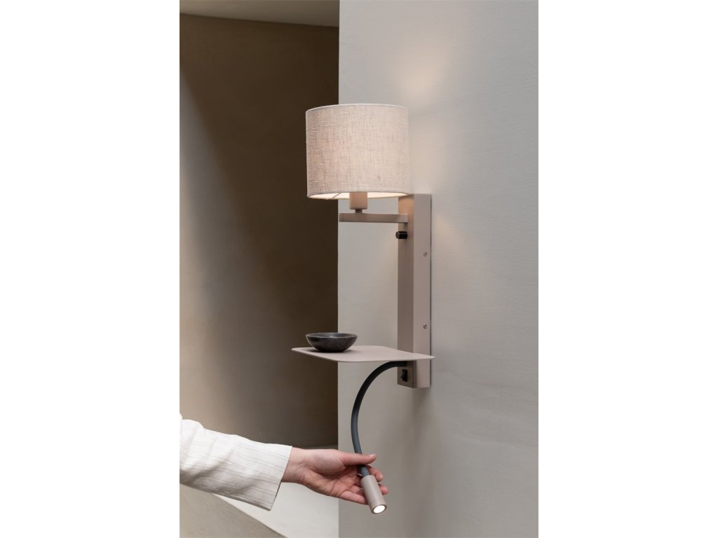 Nástěnná lampa FLORENCE se čtecí lampičkou, pískové kovové tělo a světlé lněné stínidlo, od holandské firmy it´s about RoMi