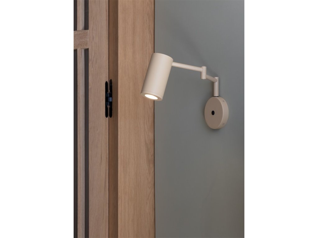 Nástěnná lampa BILBAO v barvě béžové je svítidlo vyrobené z kovu, s celkovou výškou 27 cm, s kulatou základnou, s béžovým kabelem.