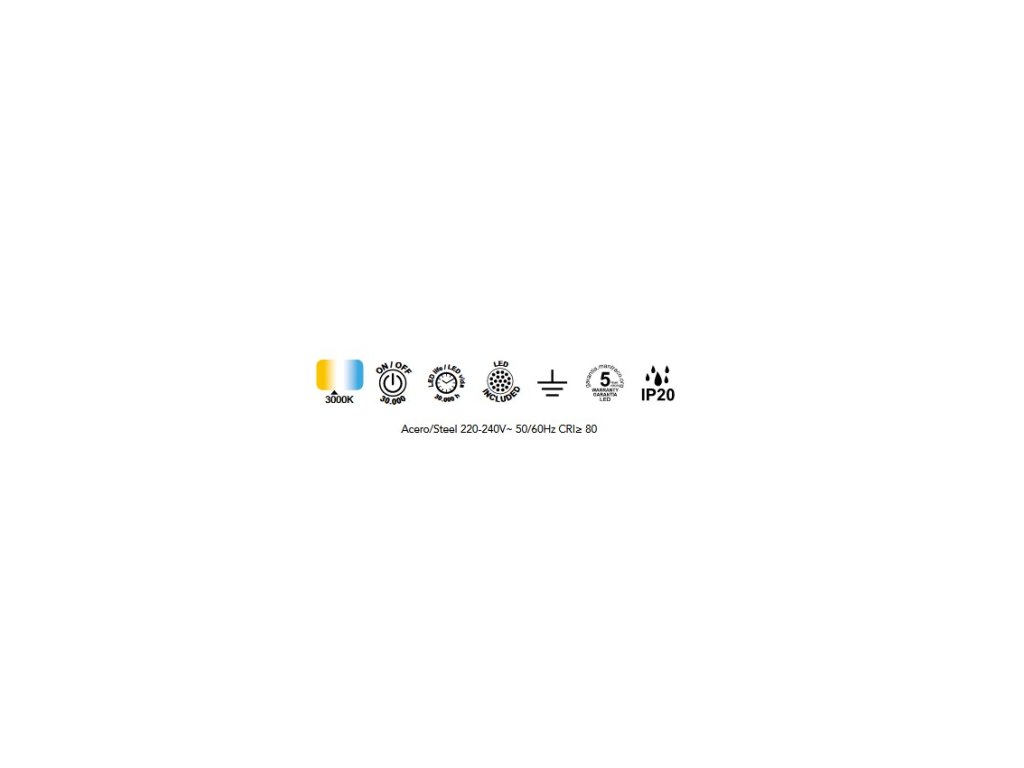 Svítidlo má vestavěnou LED 5W, 3000K, 400 lm, životnost LED 30.000 provozních hodin, životnost vypínání 30.000 cyklů ON/OFF.