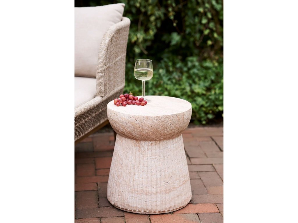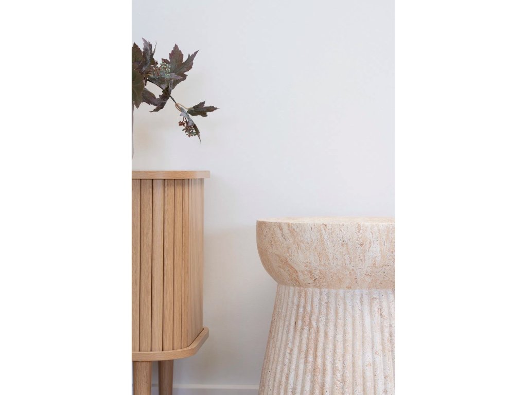Odkládací stolek BONN House Nordic o průměru 37 a výšce 43 cm, MGO keramika je jednoduchým, ale působivým stolkem pro interiér. Stolek je vhodný do obývacího pokoje nebo na terasu, Stolek BONN má drážkový design.
