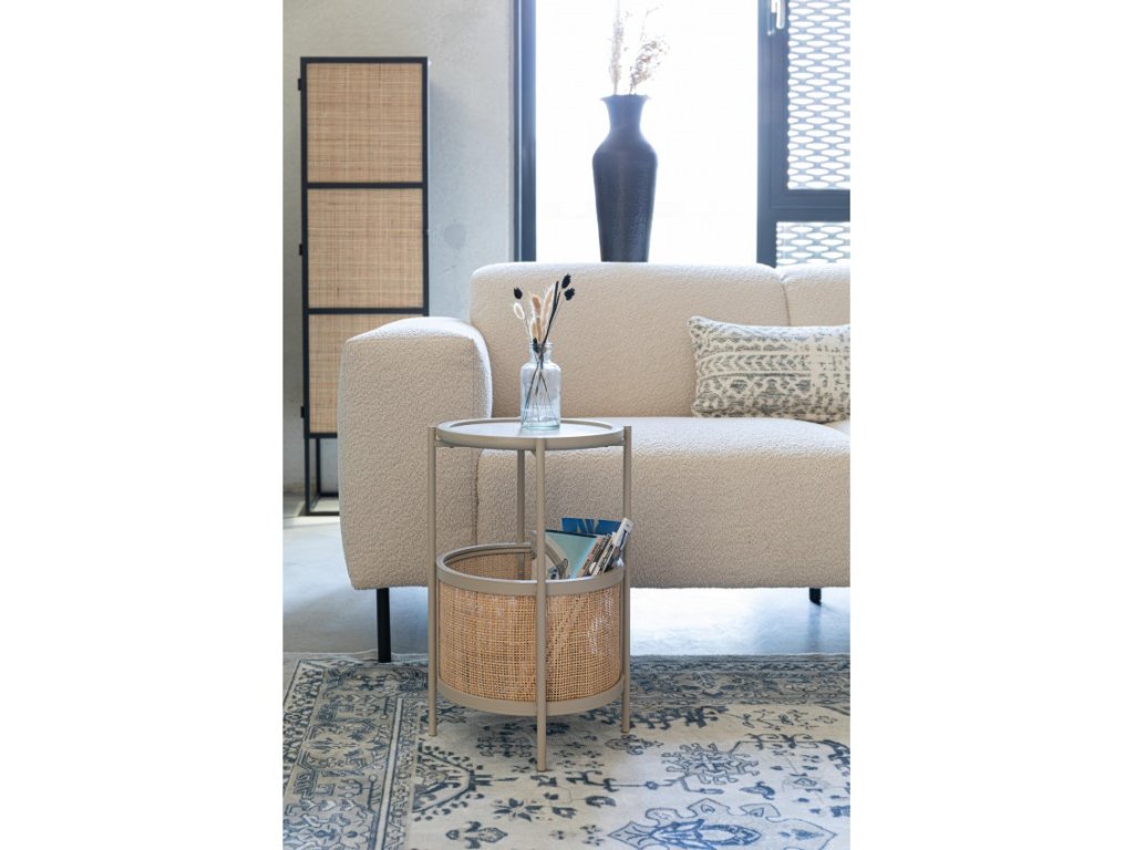 Odkládací stolek MAKOTO WLL Ø30 cm, ratan pískový je novinkou holandského dodavatele White Label Living. Odkládací stolek má MDF pískovou desku s ratanovými stěnami a pískovými kovovými nohami. Stolek MAKOTO je vhodný do obývacího pokoje nebo do ložnice.