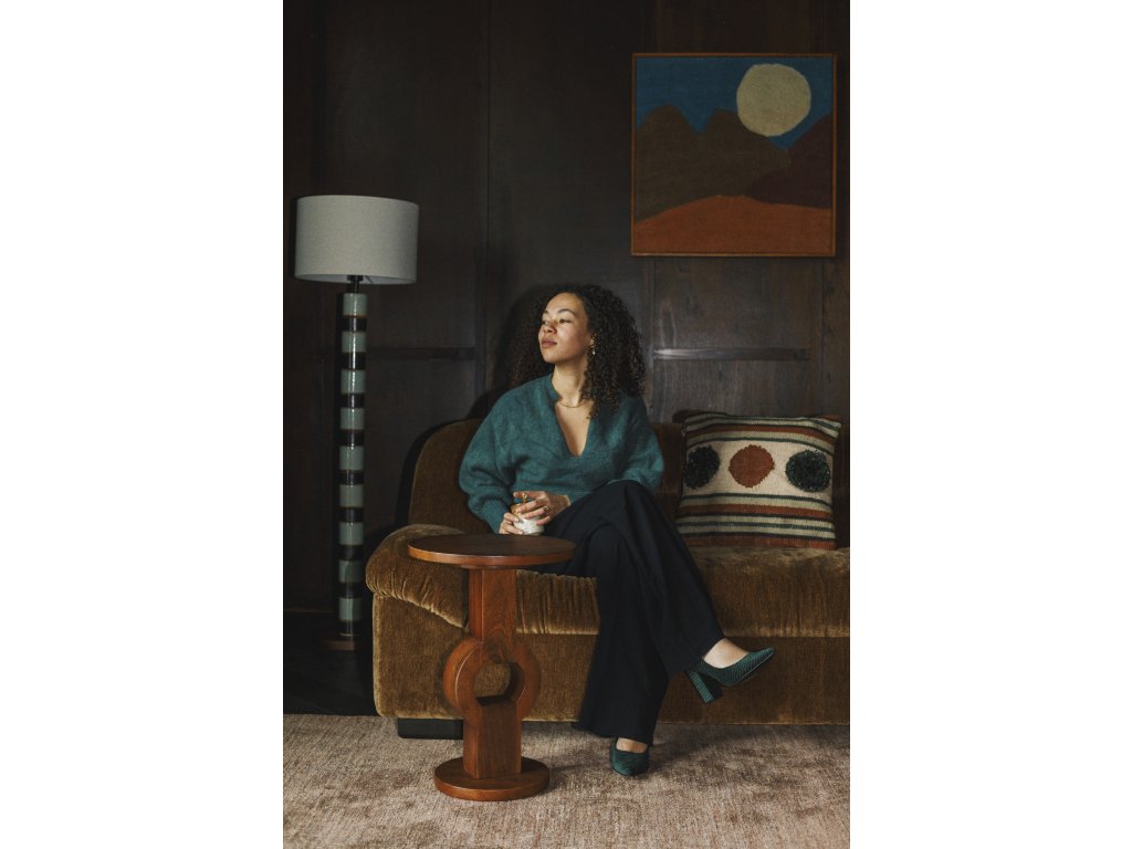 Design s dřevěnými nohami v hlubokém barevném tónu