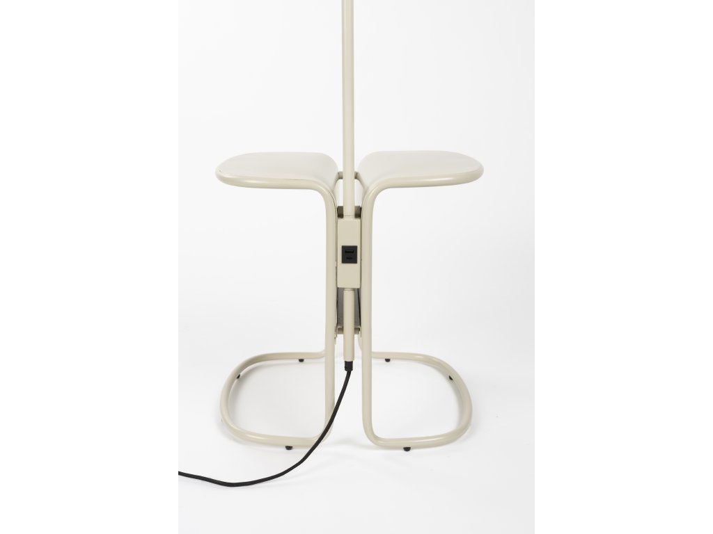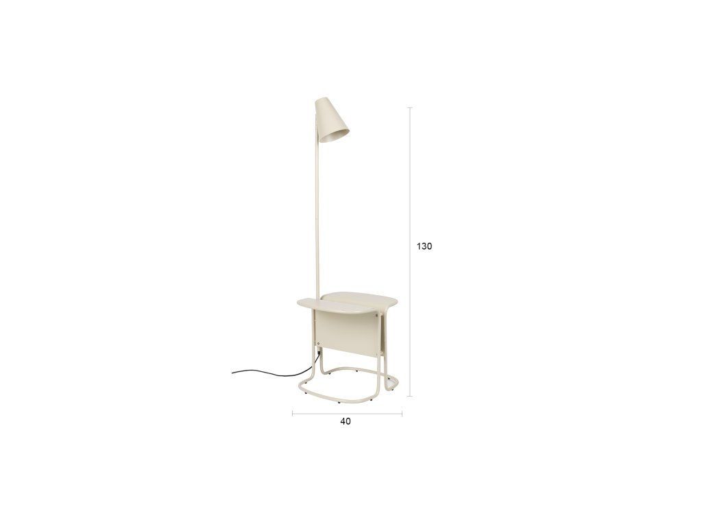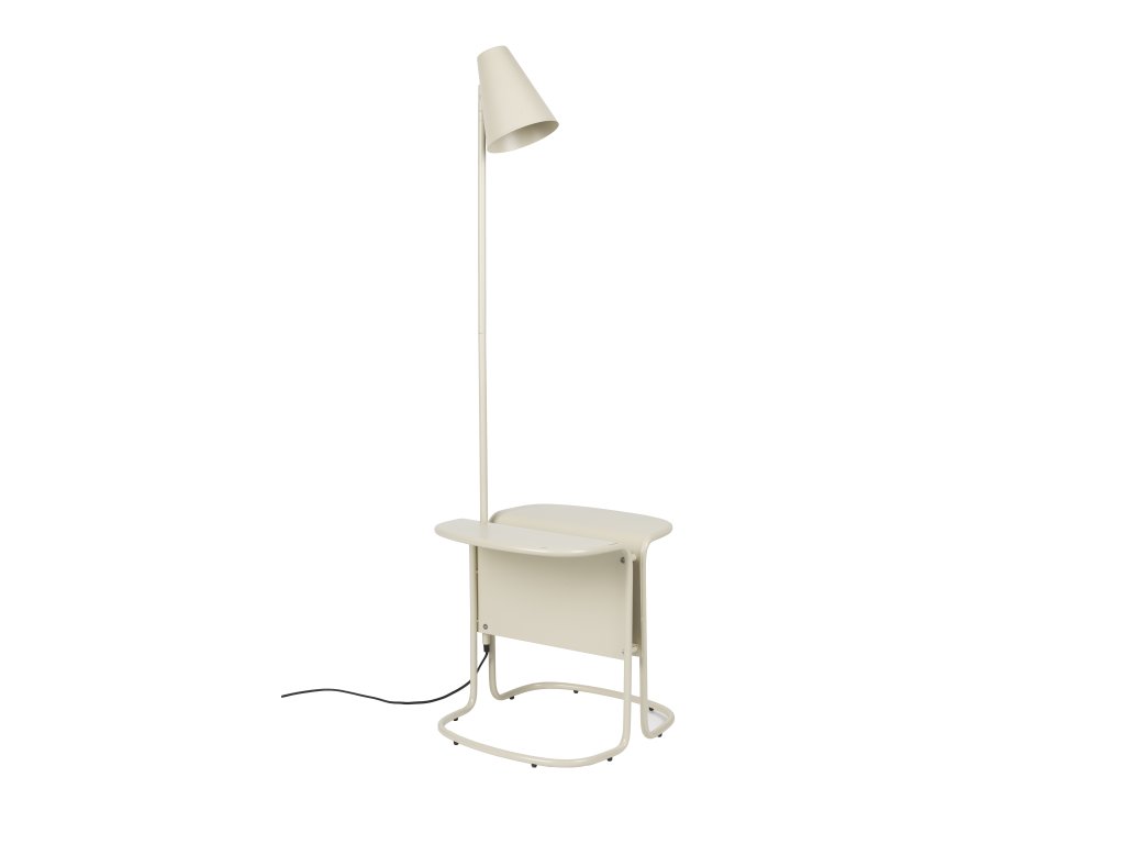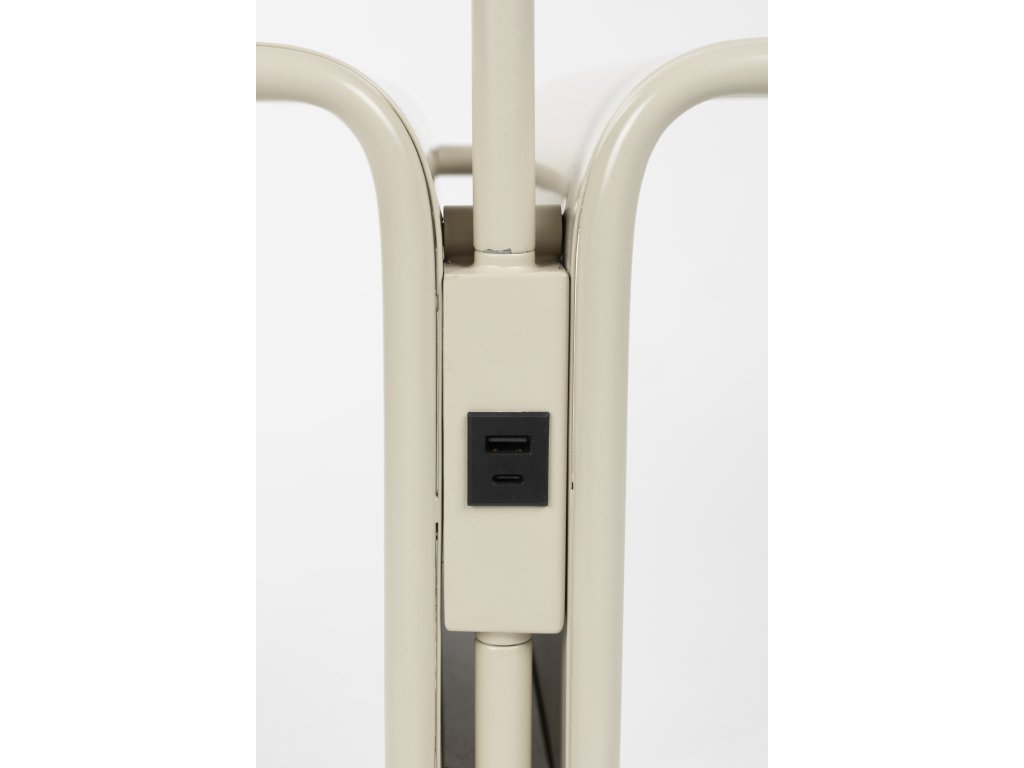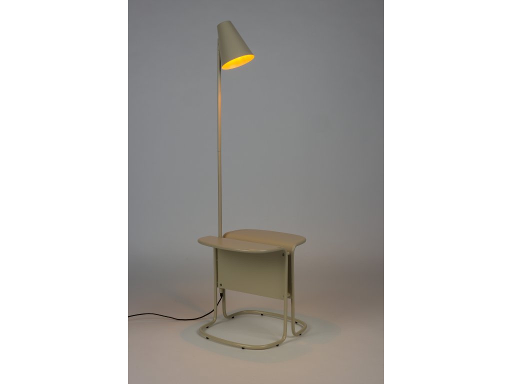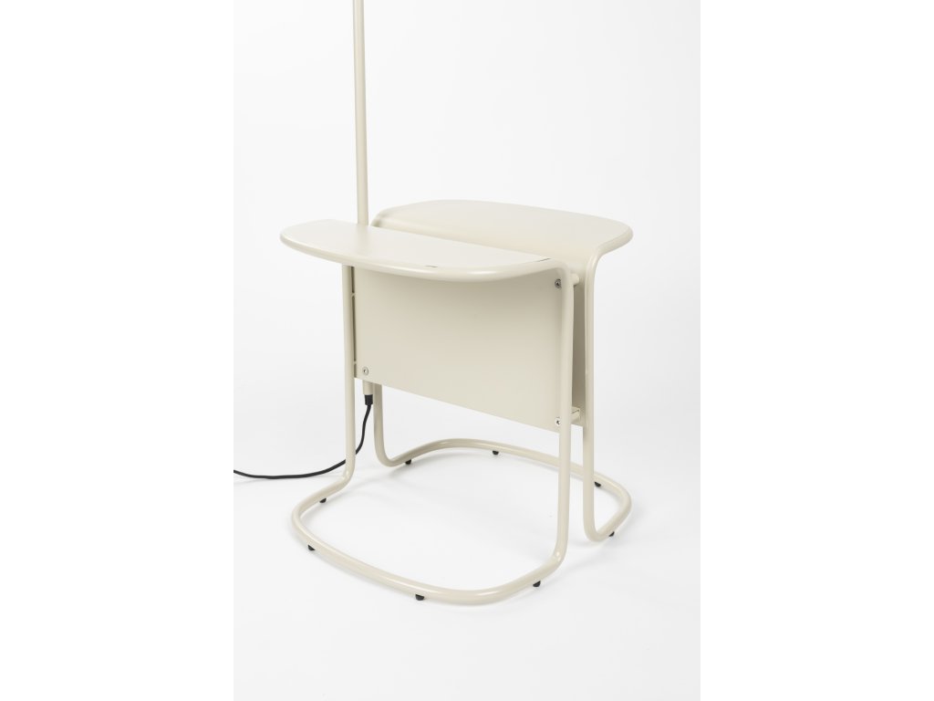 Stojací lampa LUSTOR Zuiver, výška 130 cm, béžový kov - s odkládacím stolkem, prostorem na časopisy a nabíjecím portem pro mobil či tablet