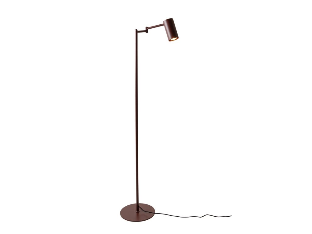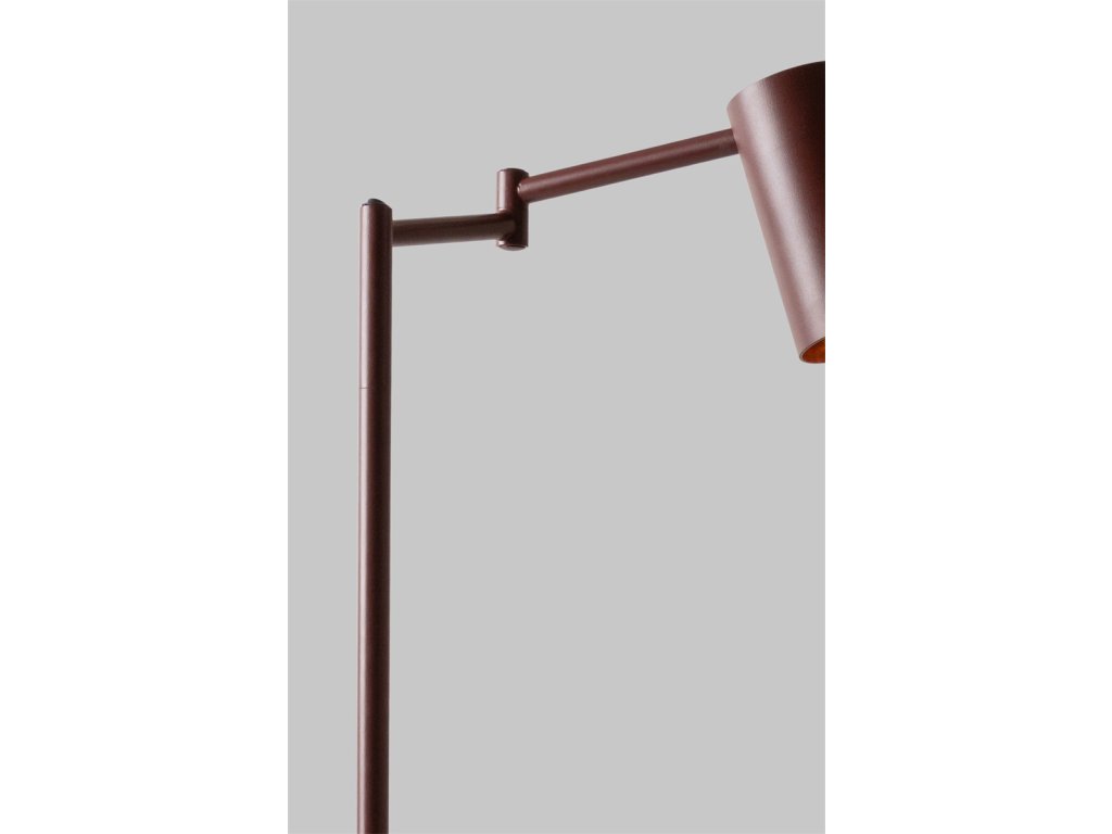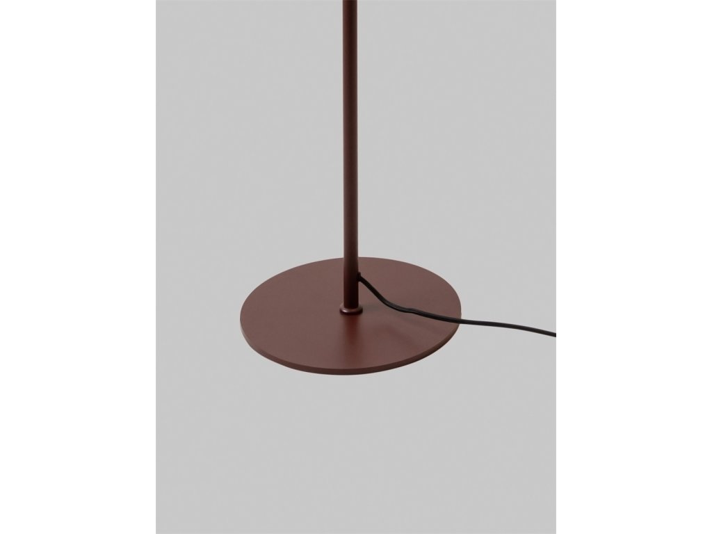 Stojací lampa BILBAO v barvě tmavě hnědé je svítidlo vyrobené z kovu, s celkovou výškou 154 cm, s kulatou základnou, s tmavě hnědým kabelem.