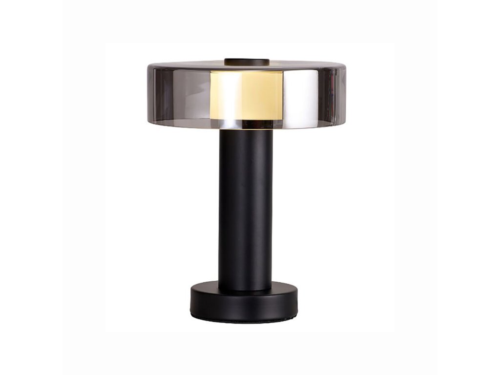 Stolní lampa GIN Mantra, průměr 22 cm, výška stínidla 6,5 cm, celková výška 27,7 cm je svítidlo v černé barvě, svítidlo vyrobené z materiálů hliník, akryl a ocel.