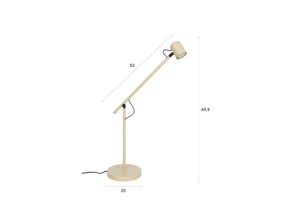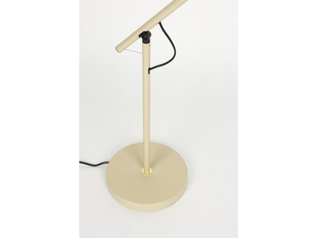 Stolní lampa AERO, kovová, béžová od holandského výrobce White Label Living (WLL) je otočná, má kruhovou kovovou základnu s kloubem, ze kterého vychází konstrukce, na jejímž konci je stínítko. Vypínač je na přívodním kabelu.