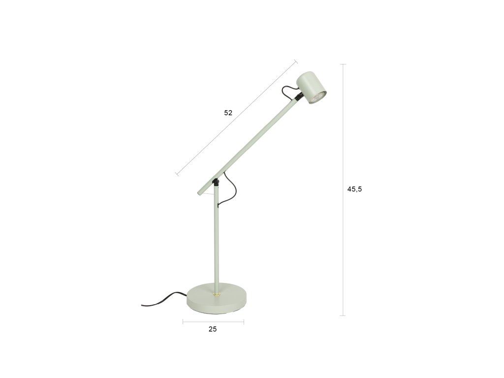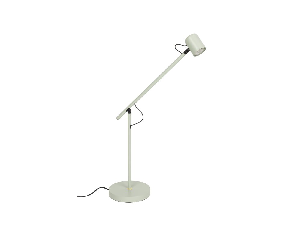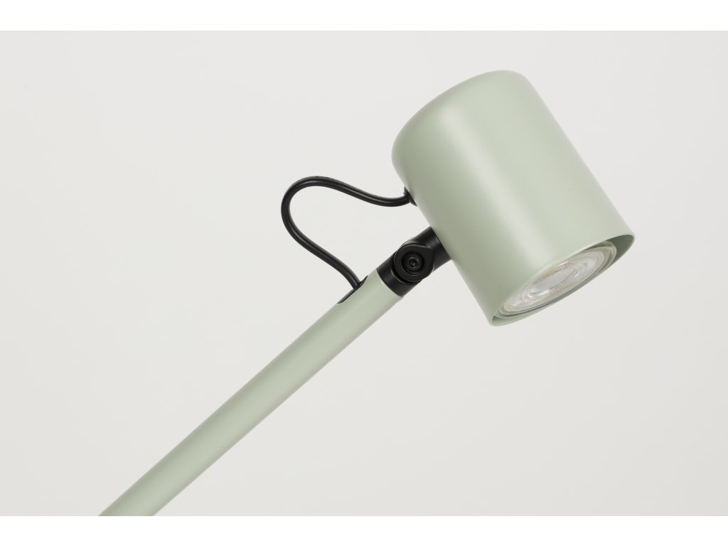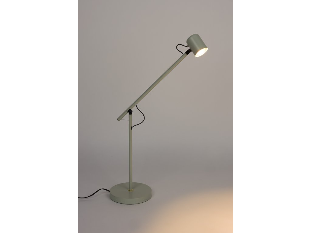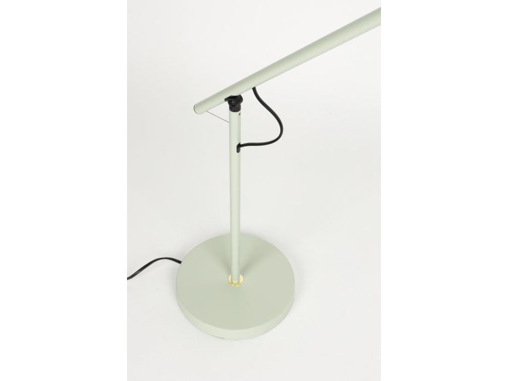 Stolní lampa AERO, kovová, zelená od holandského výrobce White Label Living (WLL) je otočná, má kruhovou kovovou základnu s kloubem, ze kterého vychází konstrukce, na jejímž konci je stínítko. Vypínač je na přívodním kabelu.