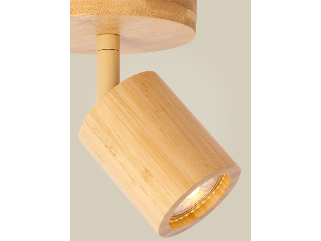 Stropní svítidlo JAVA je svítidlo vyrobené ze světle hnědého bambusu, s celkovou výškou 17 cm, se stínidlem na kruhové základně (montuře).