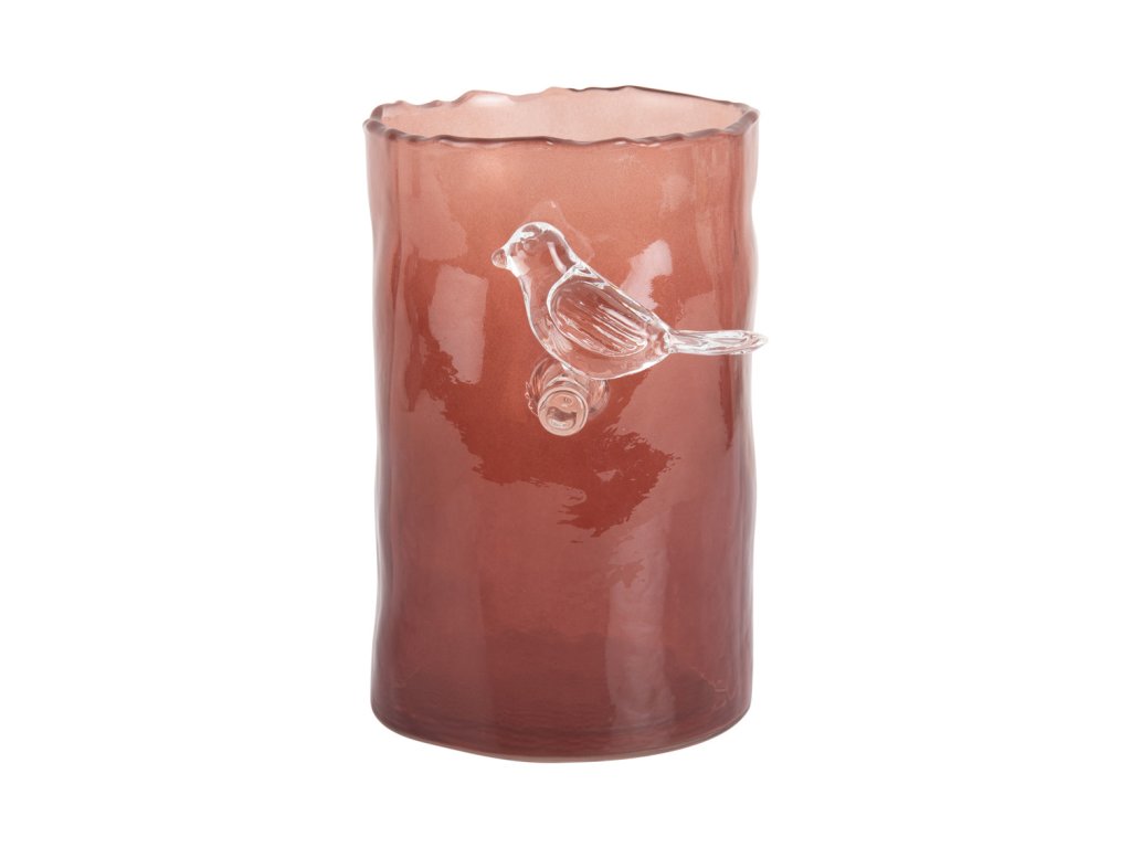 Skleněná váza Pták na větvi S, červená, průměr 9,5 cm, výška vázy 15 cm