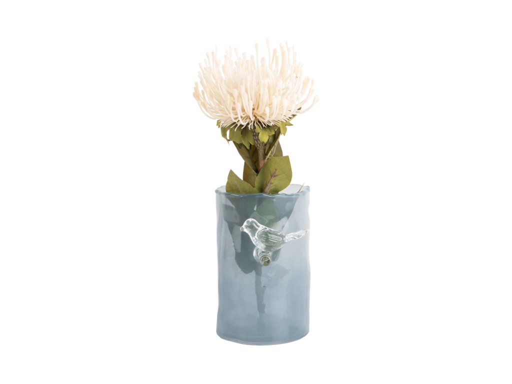 Váza BIRD ON BRANCH S, PT, Ø9,5 cm, sklo, modrá