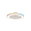 Velké stropní svítidlo GAMER LED se skrytými lopatkami ventilátoru pochází z nabídky španělské firmy MANTRA. Šedobílé je tělo svítidla, kryt ventilátoru a bok svítidla je v barvě šedobílé, boční část RGB je v duhové barvě (plast a kov).