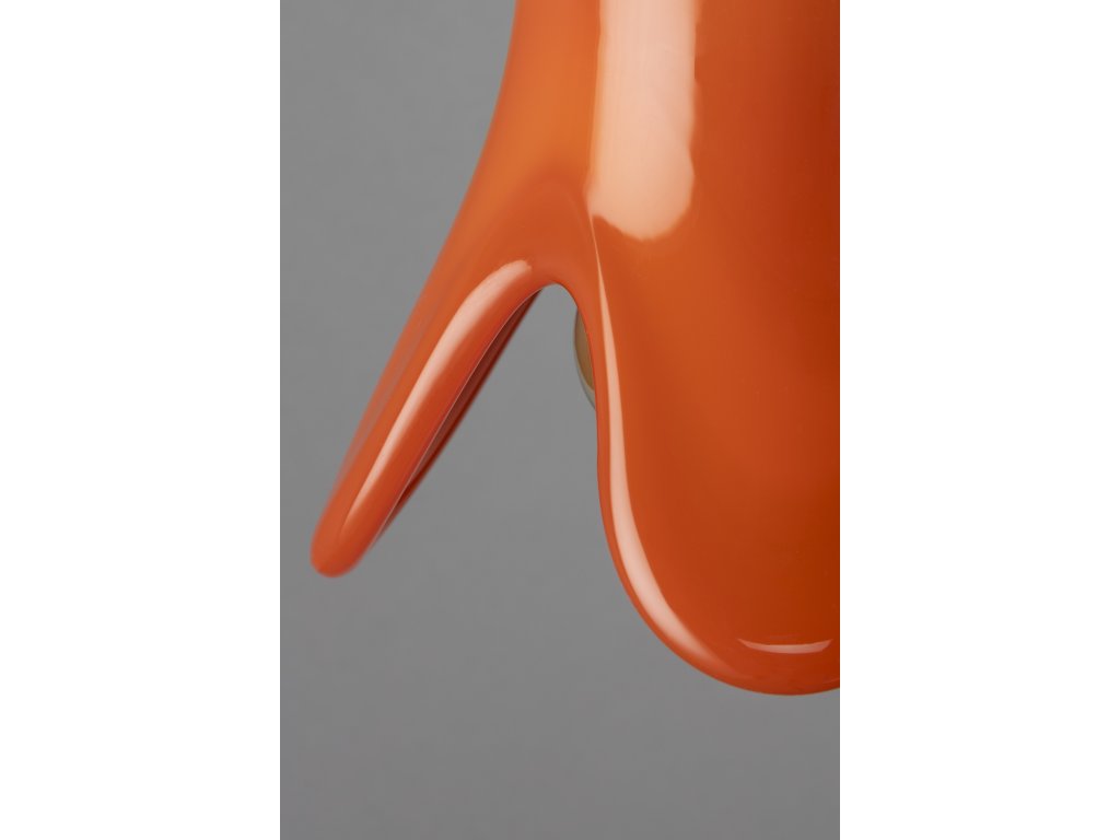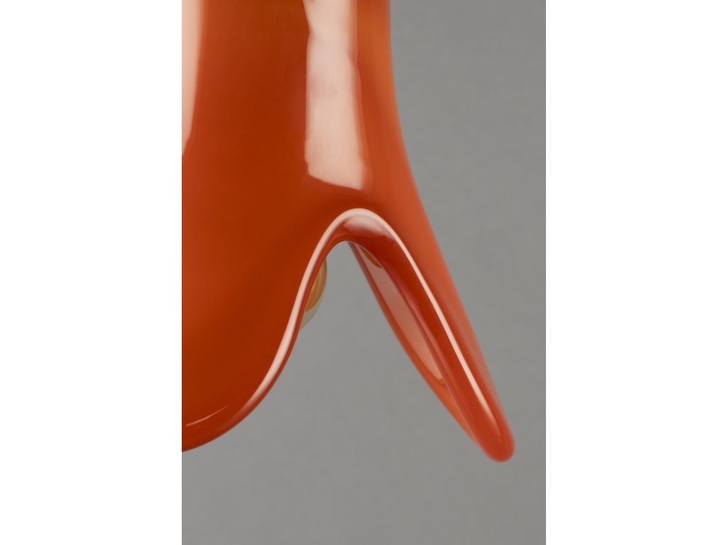 Vyrobeno ze skla v zářivě oranžové barvě. Navrženo s organickými, zaoblenými tvary. Inspirováno veselým vzhledem retro interiéru. Promění jakýkoli prostor v útulné místo – místo, které zahřeje vaši duši.