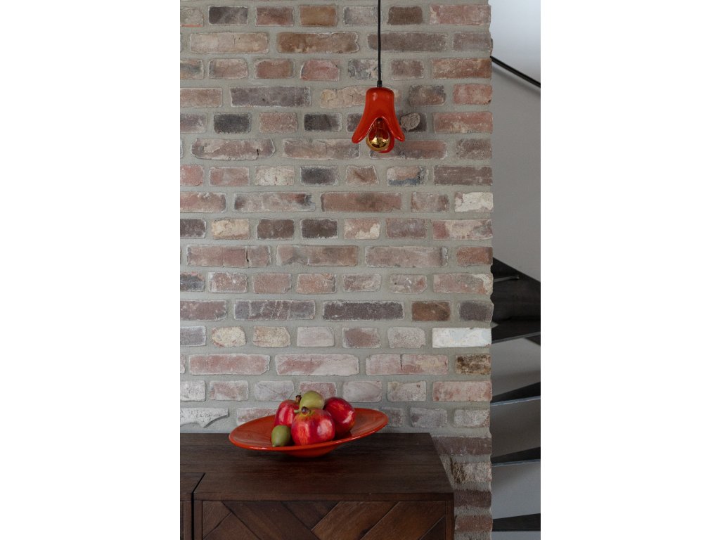 Pokud máte doma rádi retro atmosféru, závěsná lampa GABLE je přesně to, co potřebujete. Tato skleněná závěsná lampa by se snadno stala součástí stylového interiéru sedmdesátých let. Zářivý oranžový odstín skla okamžitě rozjasní celou místnost, zatímco zaoblené, organické tvary dodávají hravý nádech. Ideální pro přidání jemného barevného akcentu do vašeho interiéru.