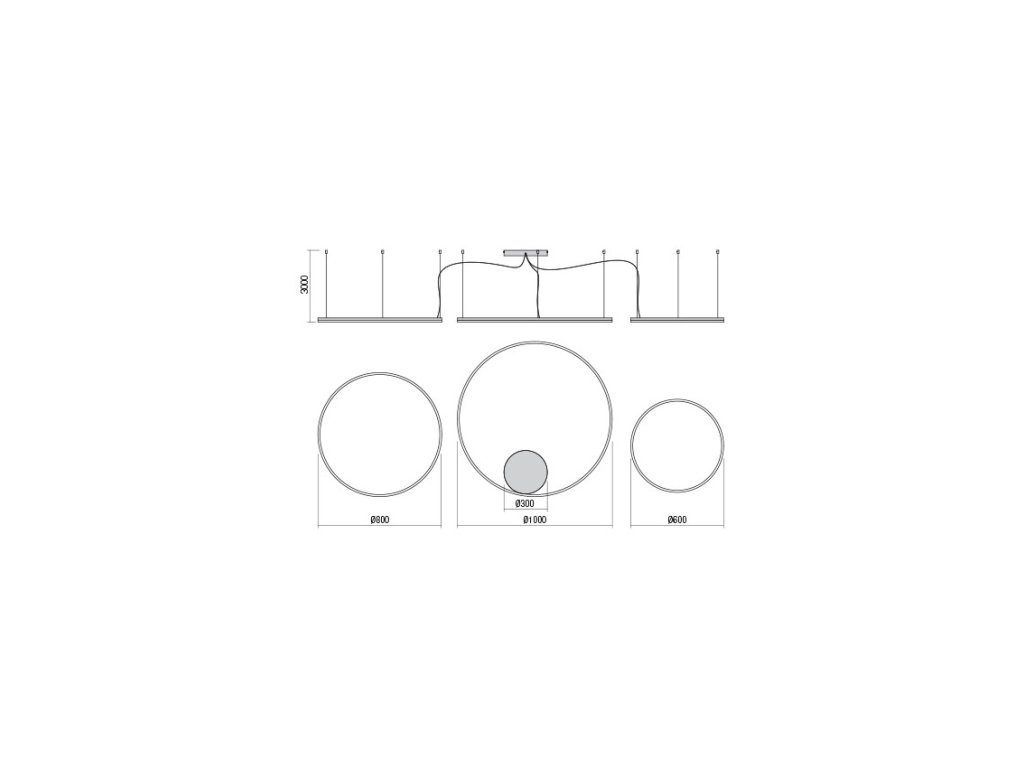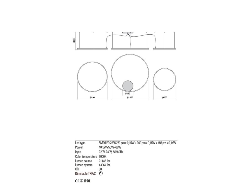 Rozměry: Ø60 +Ø80+ Ø100 cm, závěs 200 cm
