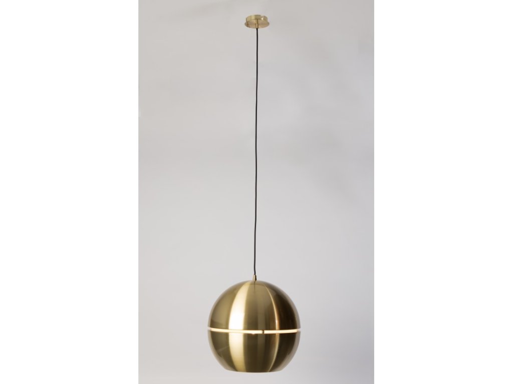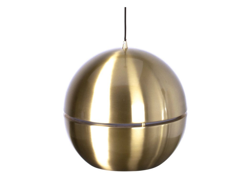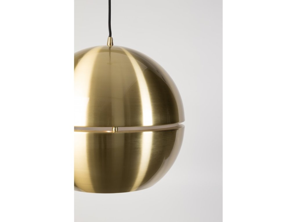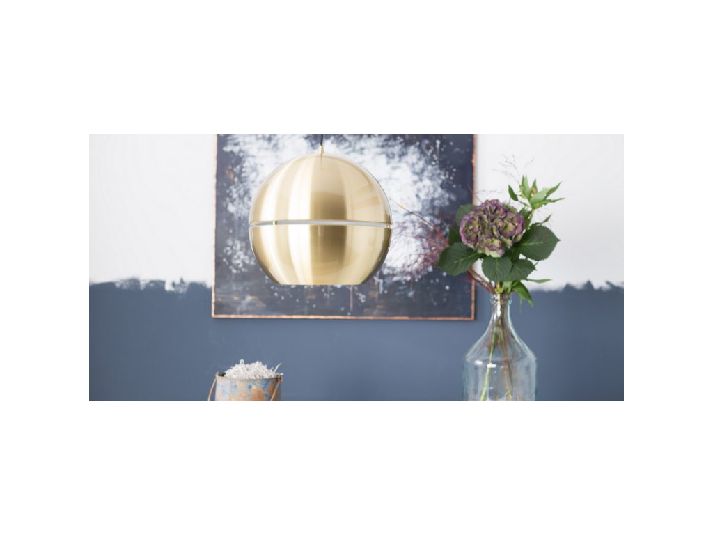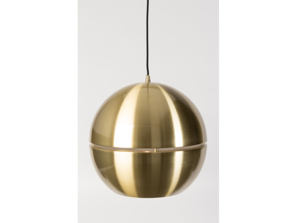 Závěsné svítidlo Retro Gold ZUIVER Ø40 cm, kov zlatý je vhodné do obývacího pokoje nebo do jídelny nad jídelní stůl. Svítidlo má zajímavý efekt svícení, neboť má okolo svého průměru volný pruh, kterým prosvítá světlo, a tím vzniká nádherná atmosféra v interiéru.